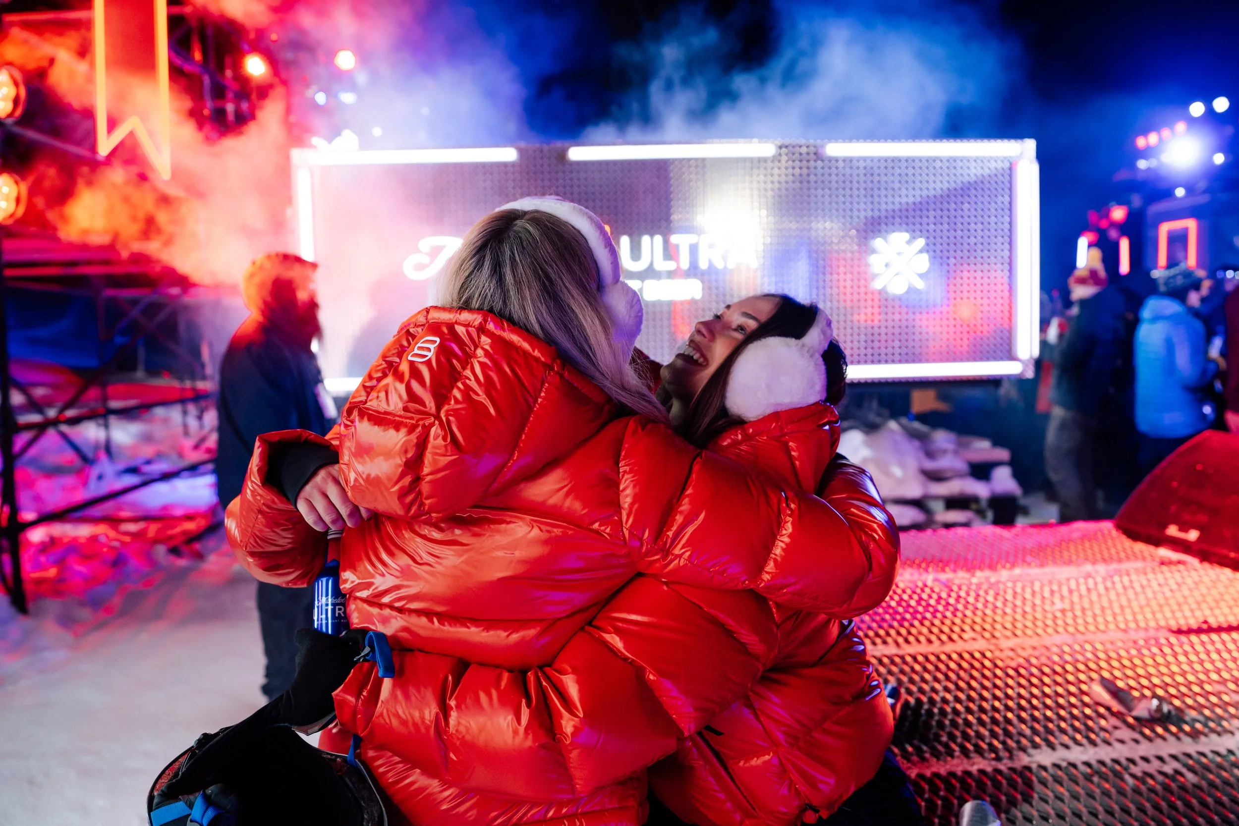 Once we reached Red Pine Lodge, we were able to enjoy the entire event from the top of the mountain—including night skiing right outside the lodge. Skiing under the lights in Park City has a completely different atmosphere than during the day. The mountain is quieter, the air is colder, and the glow from the lights across the snow creates a really unique setting for photos.